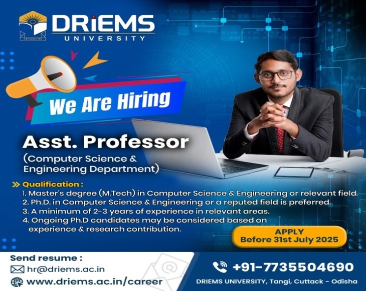 Advertisement for recruitment of the post of Assistance Professor for Computer Science and Engineering Department
