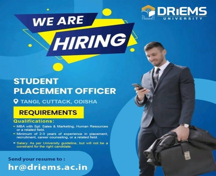 Advertisement for the post of Student Placement Officer in Career Development Cell, DRIEMS University