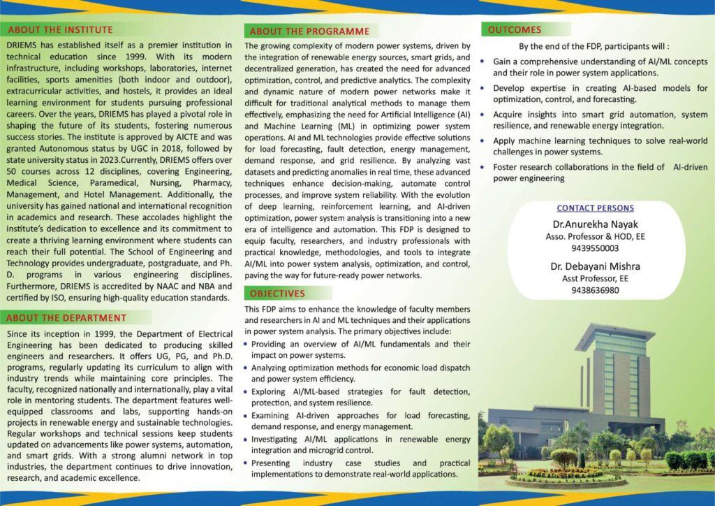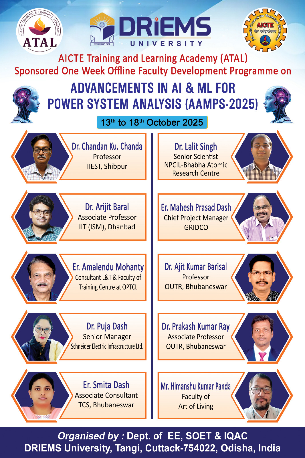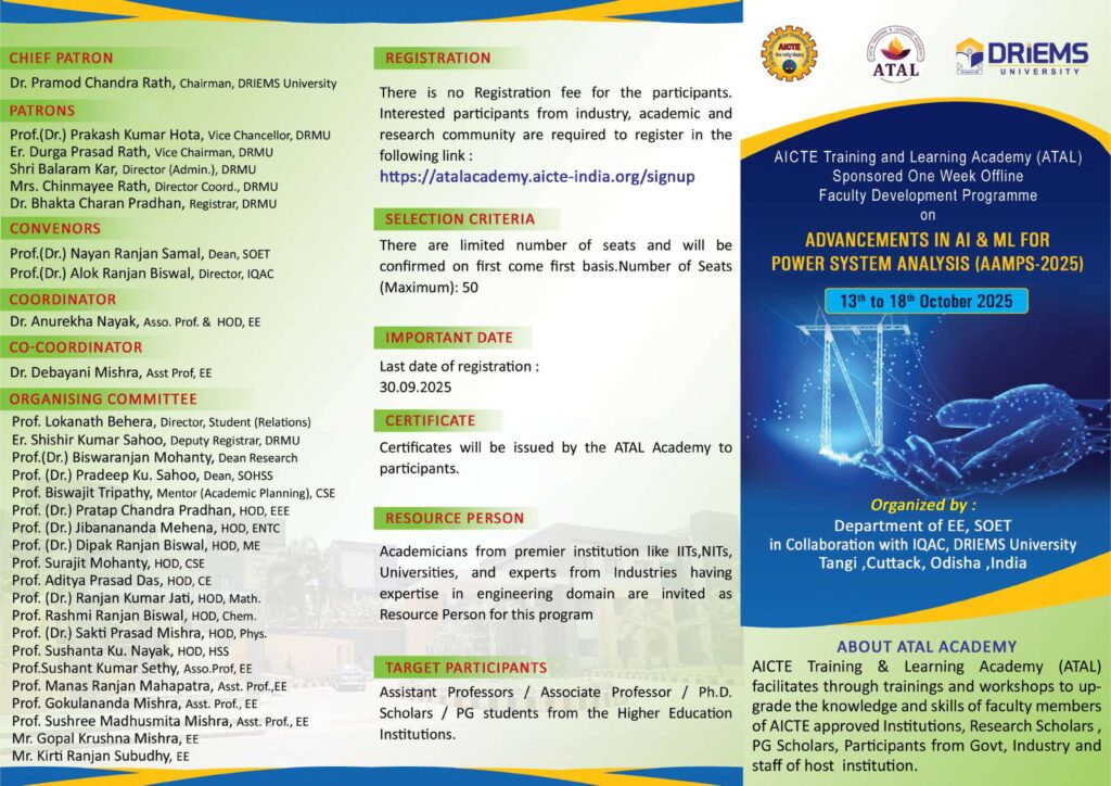 AICTE-ATAL One Week Offline FDP on “Advancements in AI and ML for Power System Analysis (AAMPS-2025)”