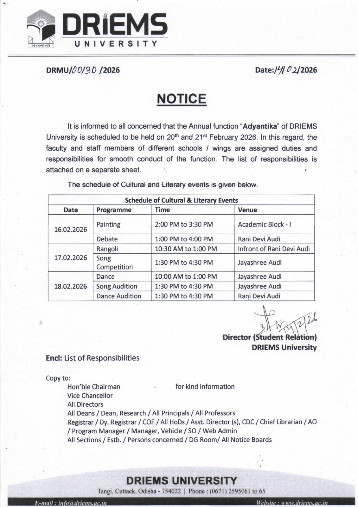 DRIEMS, a Premier Technical Institute of India with the highest ‘A’ Grade by NAAC (under UGC) has grown from strength to strength since its inception in 1999.