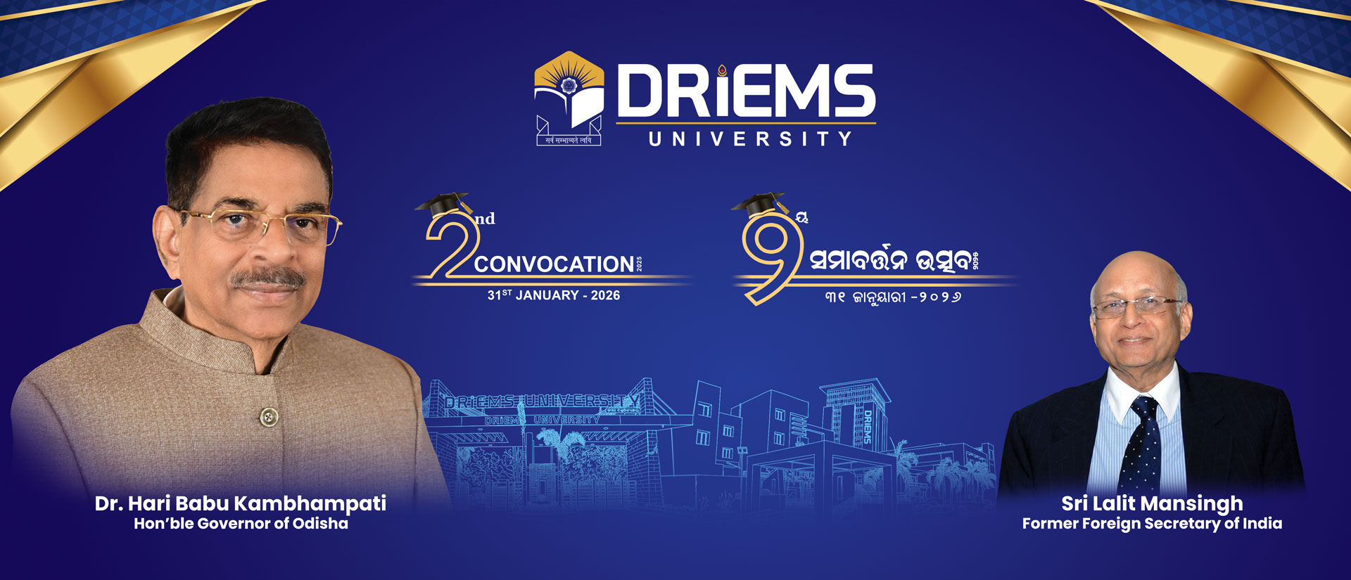 I am delighted to know that DRIEMS University is commemorating its 2nd Convocation. The convocation ceremony is not merely a formal rite of passage but a celebration of perseverance, intellectual growth and the transformative power of education. It is a moment of immense pride for the graduates, their families and the dedicated faculty and staff who have nurtured them throughout their academic pursuits. I commend the University administration, faculty and organizing team for their tireless efforts in making this grand occasion possible. I wish all graduating students every success in their future endeavors, filled with professional fulfillment, personal growth and impactful contributions. May DRIEMS University continue to flourish as one of Odisha’s premier institutions of higher learning, shaping future leaders and advancing knowledge for the greater good.