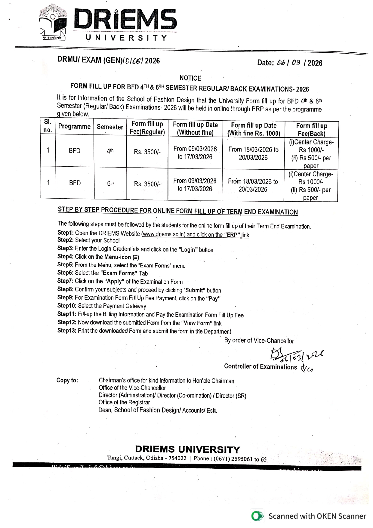 Exam Notice | SoM Exam Notice Form fill up notice for Even semester examination-2026 ByDRIEMS University March 6, 2026March 9, 2026