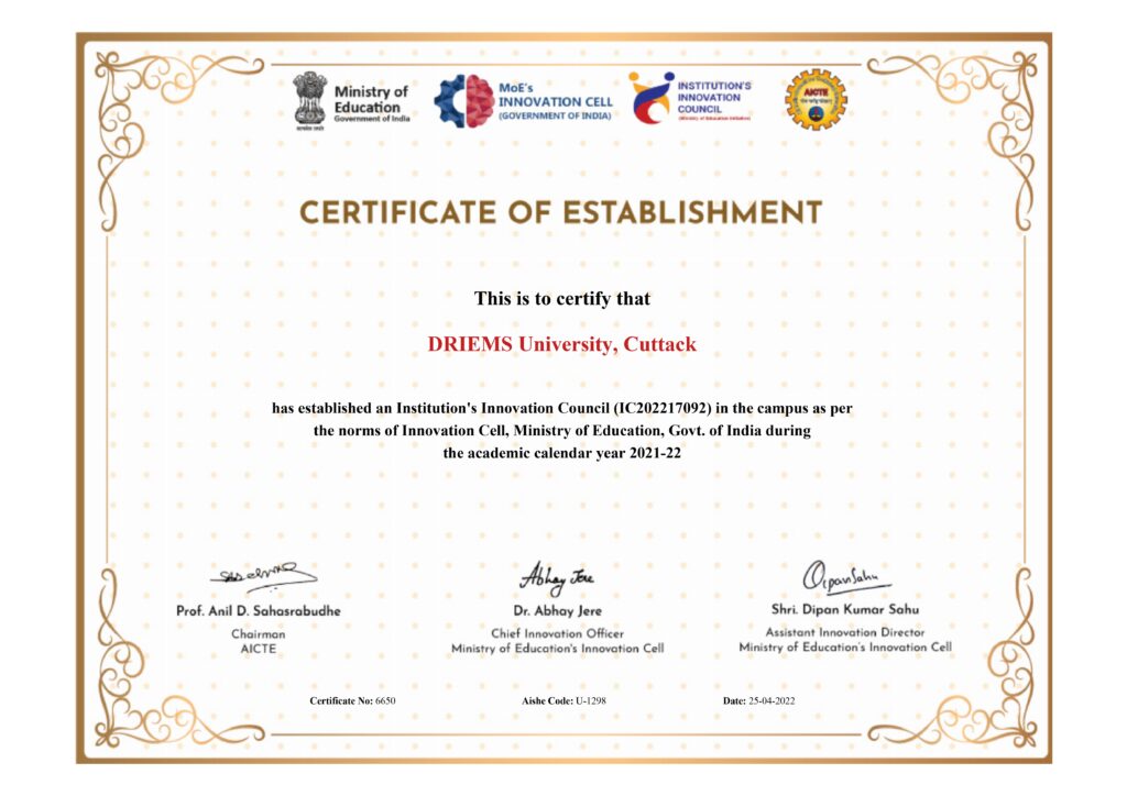 The Institution’s Innovation Council (IIC) of the DRIEMS University was established in the academic year 2021-2022.