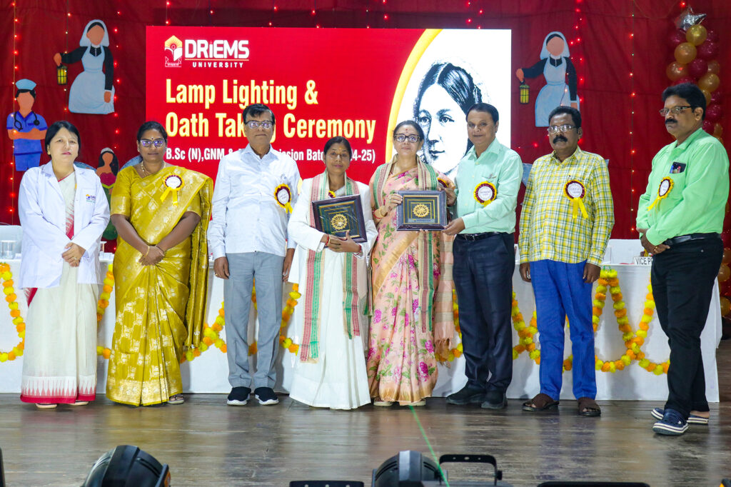 DRIEMS University successfully hosted the Lamp Lighting & Oath-taking Ceremony for the B.Sc ( N ), GNM, and ANM students (Batch 2024–25) on 8th August 2025 at Jayashree Auditorium.