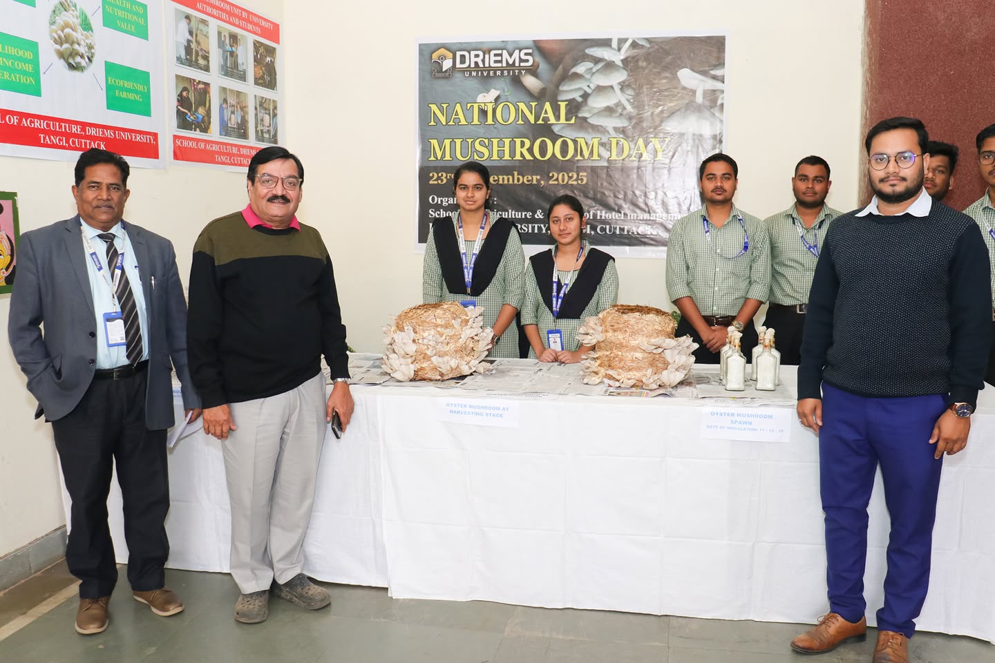 The School of Agriculture, DRIEMS University, marked National Mushroom Day with vibrant participation, highlighting the practical and entrepreneurial potential of mushroom cultivation. Students demonstrated mushroom production techniques and shared insights from hands-on training under the guidance of Prof. (Dr.) Manoranjan Mohapatra and Dr. Prateek Kumar Behera.