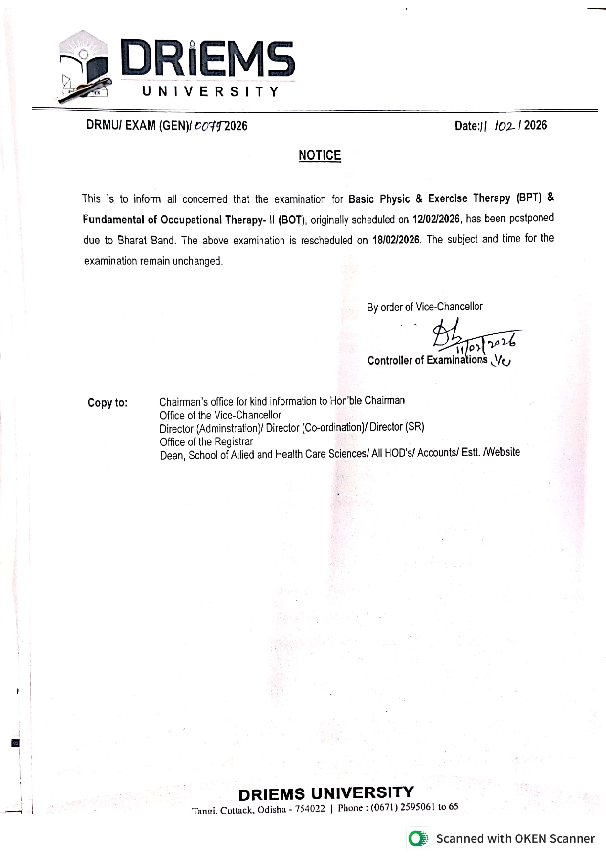 SOAH Exam Notice Result Publication Notice of BMLT,BMRT 1st & 2nd year and BAT,BOTT 1st year Examination-2025 ByDRIEMS University February 4, 2026February 5, 2026