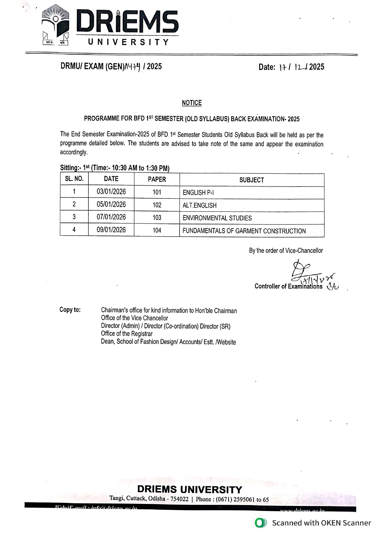 Programme for BFD 1st semester (Old Syllabus) Examination-2025(Back)