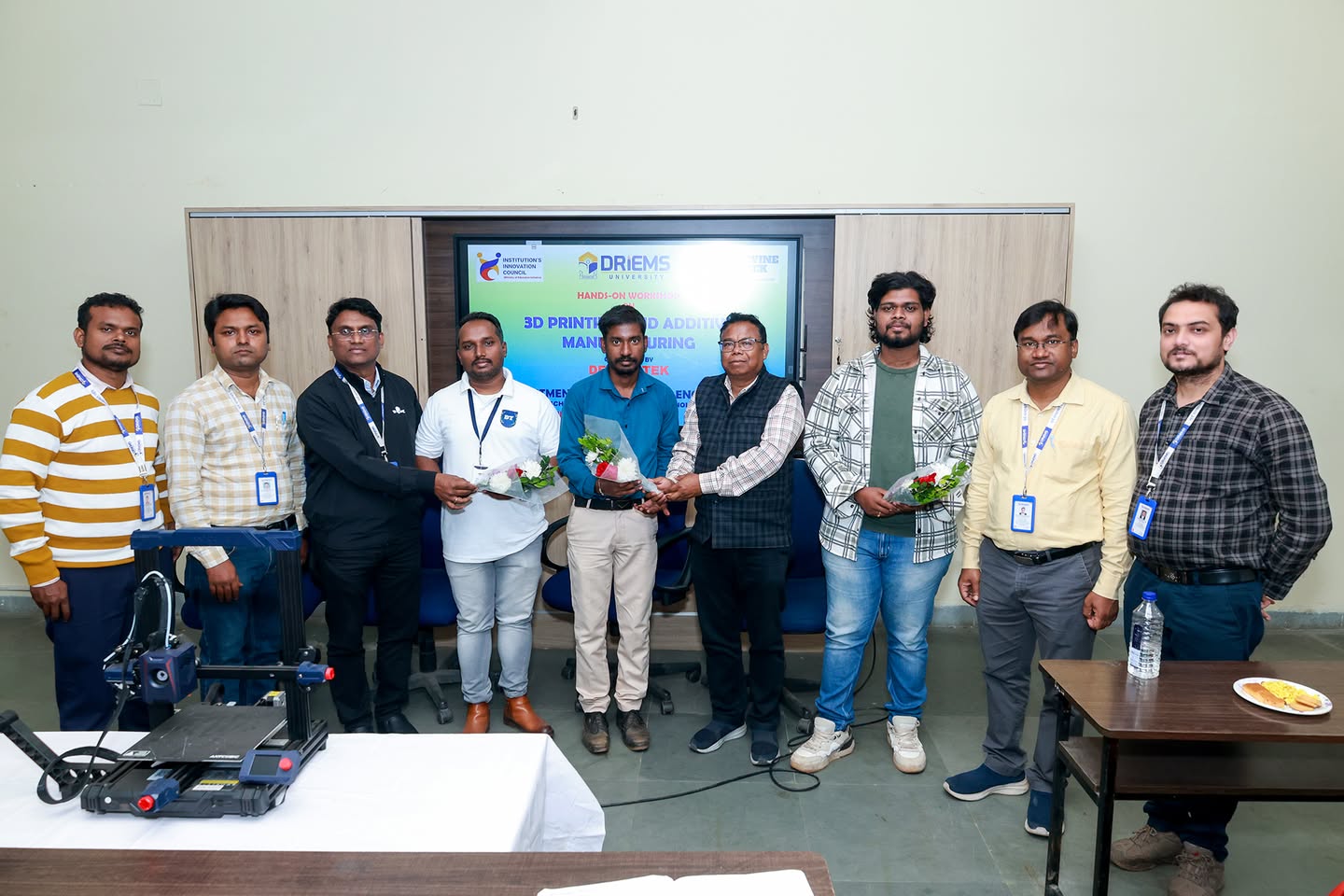 Department of Mechanical Engineering, DRIEMS University successfully organised a one-week workshop on “3D Printing and Additive Manufacturing” from 15–20 December 2025 for final-year students, in association with IIC DRIEMS University and DEVINE TEK Training Institute.
